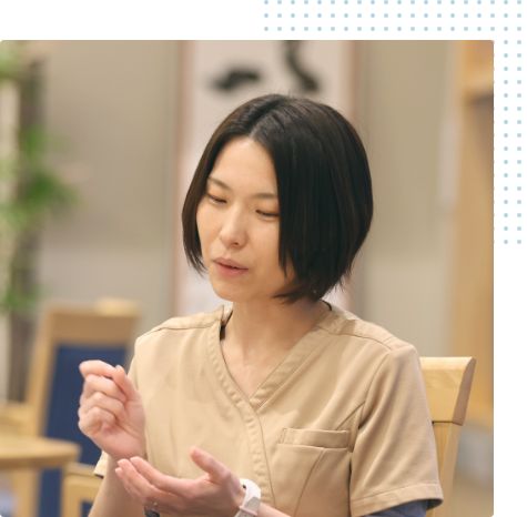 また、働くスタッフも安心して仕事ができるよう予測し行動をしたり、看護面からアドバイスできるようにしています。